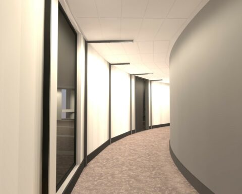 Conçu par l’agence d’architecture Sagittaire AA et le bureau d’études Artelia, le réaménagement intérieur de la tour Part-Dieu repense les paliers d’accès et les espaces de circulation pour adapter les locaux aux usages actuels. Les travaux améliorent ainsi la durabilité du bâtiment datant de 1977. Les plateaux circulaires d’une surface d’environ 1 170 m² pourront être modulés par chaque client en espaces formels et cloisonnés ou en espaces collaboratifs et nomades.