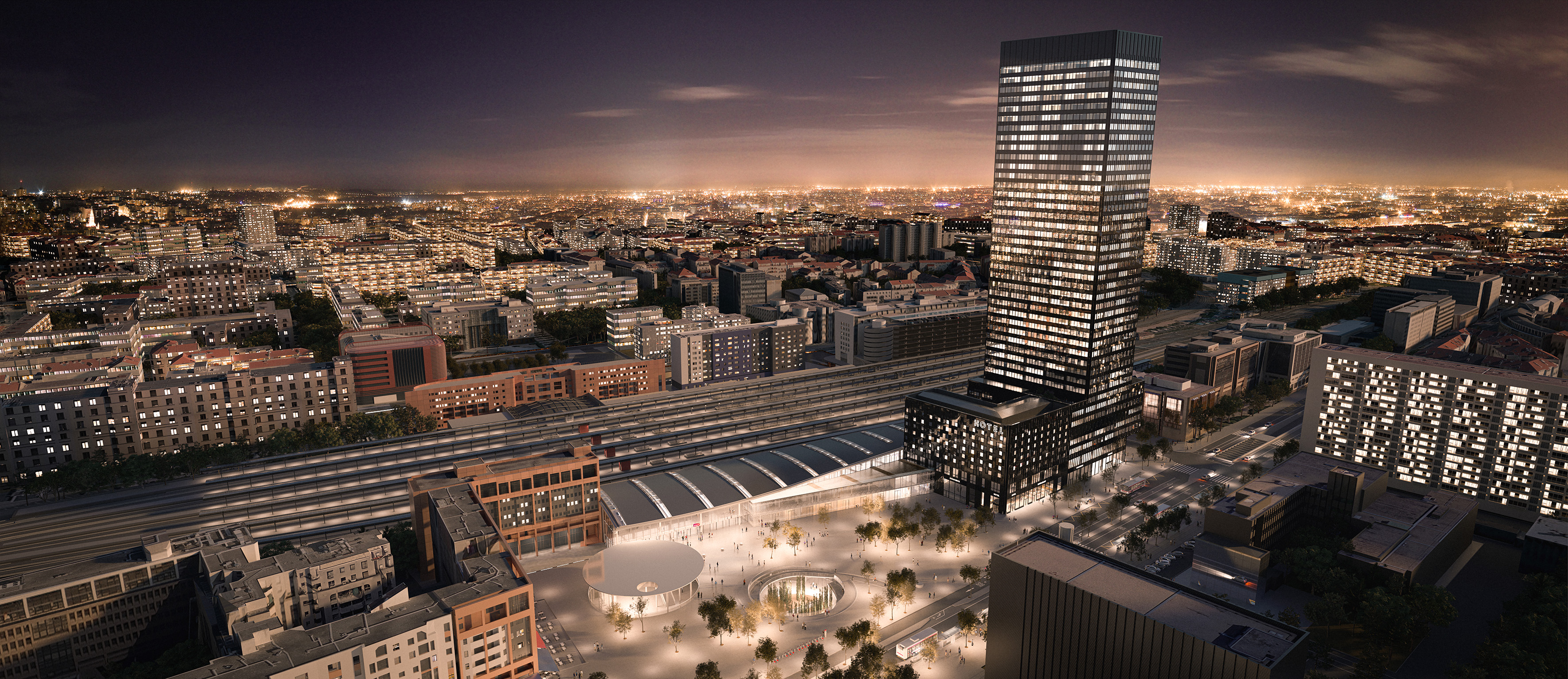 Réalisée par VINCI Immobilier en partenariat avec EUROPEQUIPEMENTS, la tour a été dessinée par Dominique Perrault. Elle s’intègre dans le pôle d’échanges multimodal et s’ouvrira en 2023 sur la place Béraudier et la nouvelle gare Lyon Part-Dieu, réaménagées respectivement par la SPL Lyon Part-Dieu et la SNCF.