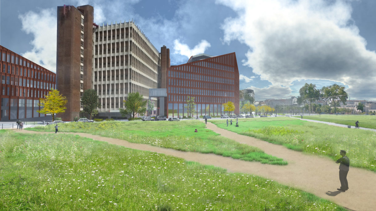 Afin d’étudier et de définir les éléments de programmation de l’esplanade qui seront confiés à une équipe de maîtrise d’œuvre, la SPL a fait appel aux compétences du groupement Initial Consultants / Itinéraire Bis / Dicobat / Collectif Pourquoi Pas / Ouesk.