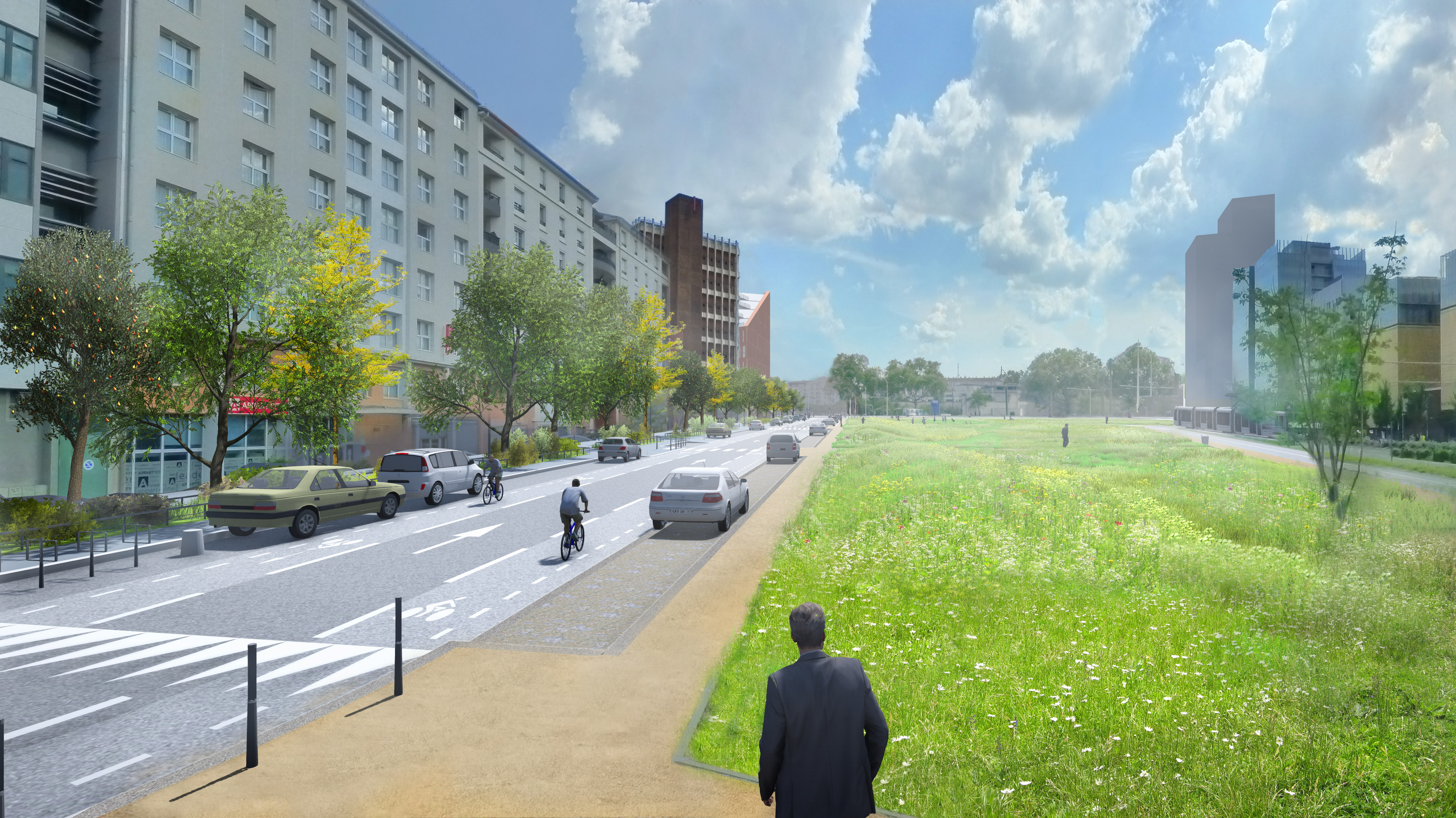 Au programme : réaménagement de la rue et création de 2 bandes cyclables, des trottoirs plus larges et ombragés, des passages piétons sécurisés, l’aménagement provisoire de l’espace entre l’opération Orange et les archives départementales (4300 m2) en une vaste prairie fleurie, la création d’un parvis piéton ombragé accueillant une station Velov’ à l’angle de la rue Kimmerling (3000 m2), création d’environ 70 places de stationnement.