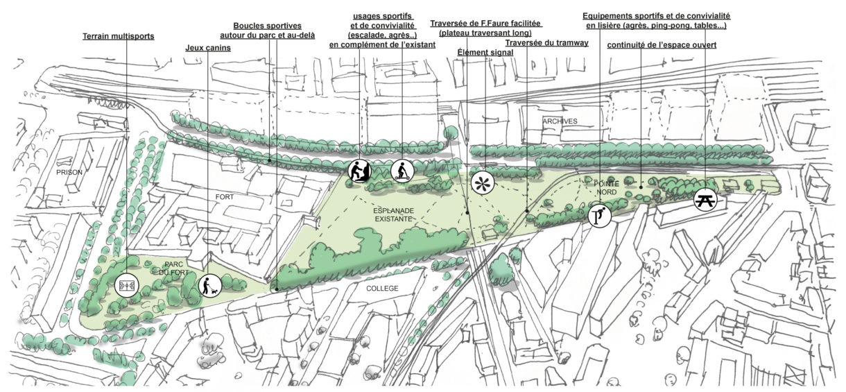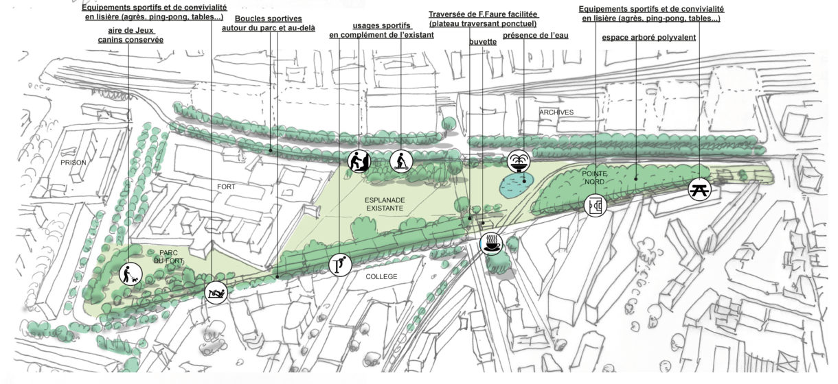 - De partager et de conforter les principaux enjeux du programme et le scénario final proposé : un parc urbain ouvert à dominante sportive.