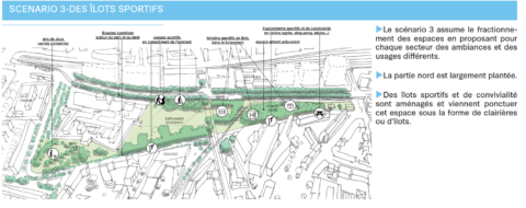 - De partager et de conforter les principaux enjeux du programme et le scénario final proposé : un parc urbain ouvert à dominante sportive.