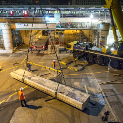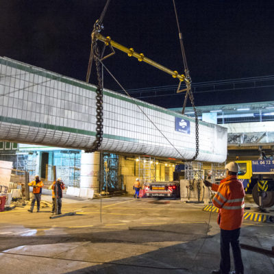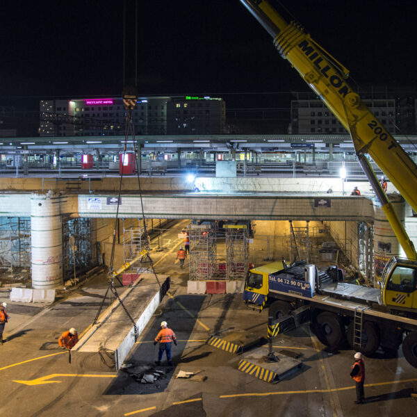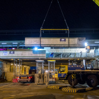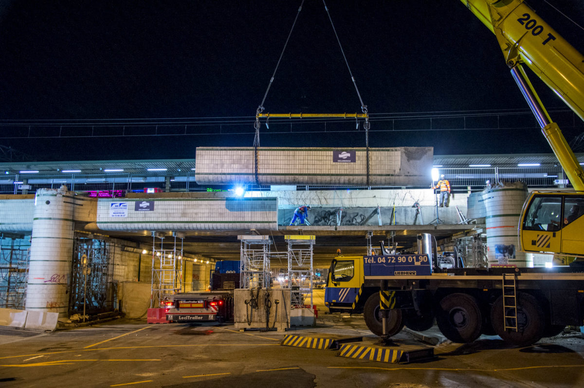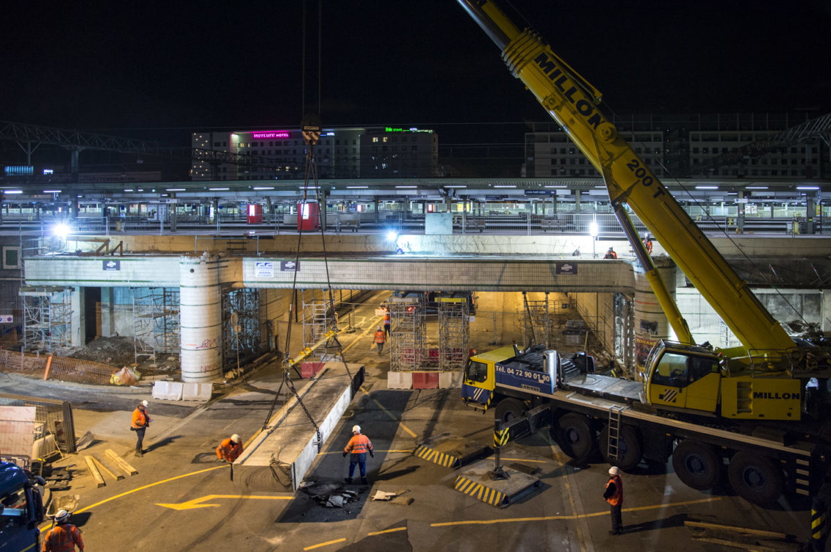 Au-dessus de l’avenue Pompidou, le pont supportant les rails est orné d’une jardinière en béton. Dans le cadre des travaux préparatoires au nouvel accès gare, cette jardinière doit être déposée pour laisser place aux travaux de construction. Ces travaux ont été réalisés la nuit du 19 au 20 mars, sous maîtrise d’ouvrage de SNCF Réseau. Prochaine étape : la démolition de la passerelle piétonne située au-dessus de l’avenue.