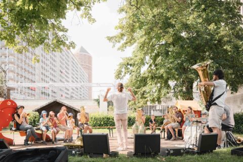 Flâner, s’amuser, déjeuner, discuter, travailler, s’entrainer, venir à vélo, fêter, jouer de la musique, attendre, s’empresser, grimper, marcher, observer, voyager… Autant d’instants pour lesquels la SPL Lyon Part-Dieu a donné carte blanche au photographe Vladimir de Mollerat du Jeu pendant tout l’été. Un travail d’immersion à l’origine de photographies épurées qui saisissent des fragments de ville et des moments de vie dans le quartier de la Part-Dieu. Une vie qui renait après une année marquée par les confinements, où chacun ressort à nouveau à l’extérieur, profite des espaces publics et des nouveaux usages de loisirs, culturels et sportifs du quartier. L’humain, l’architecture, la ville, la végétation et la vie quotidienne ne semblent alors faire plus qu’un…