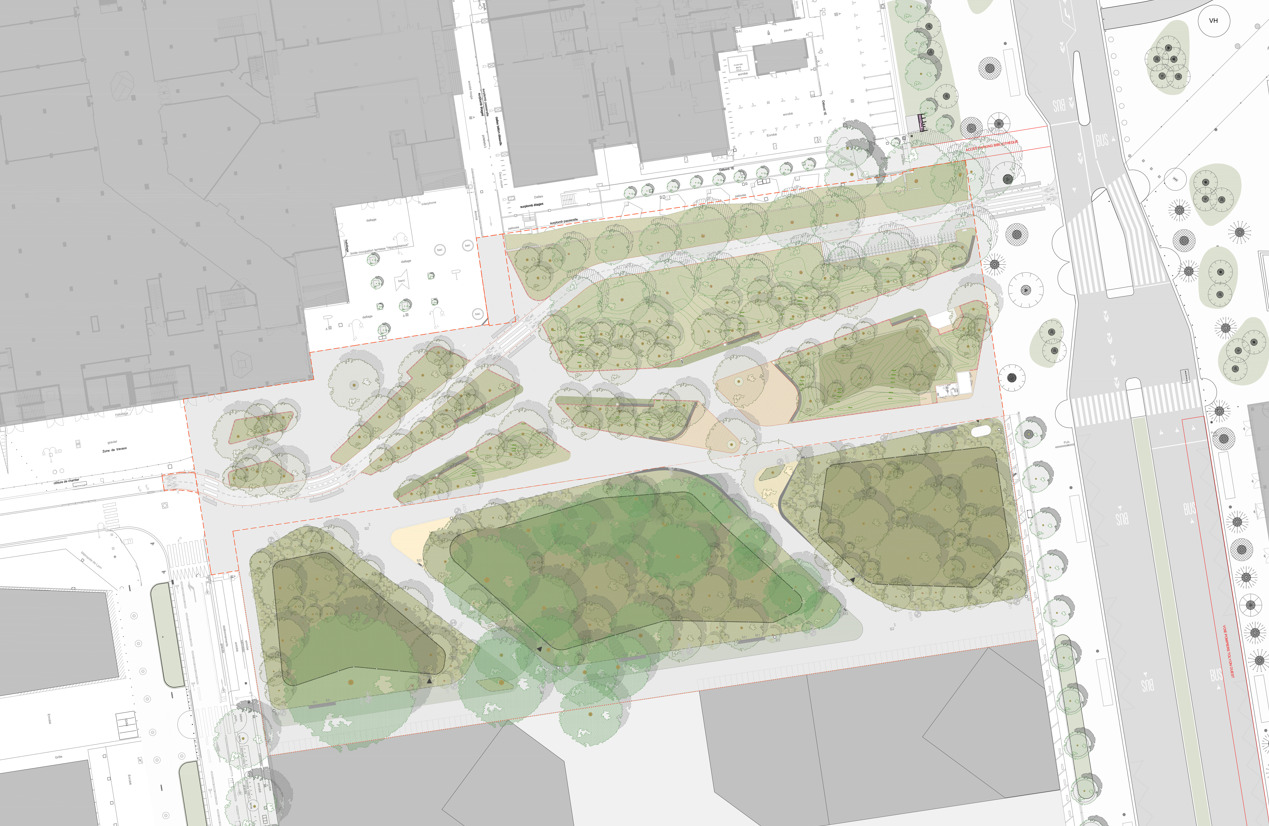 • Au nord, le long de la bibliothèque : une esplanade végétalisée pour accueillir les principaux flux de circulation piétons et cycles vers et depuis la gare.