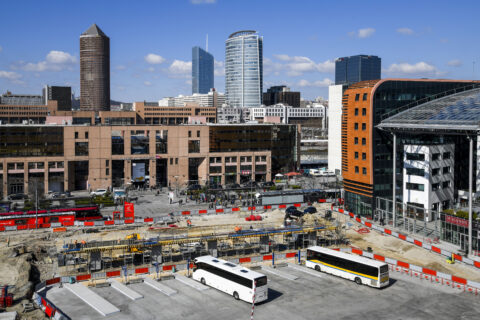 Les travaux d’aménagement de la place de Francfort, à l’Est de la gare Lyon Part-Dieu, avancent ! Au mois de mars, une nouvelle étape a été franchie avec la mise en service de la nouvelle gare routière. Un nouveau cheminement piéton est mis en place au Nord de la place, devant l’immeuble Terra Mundi.