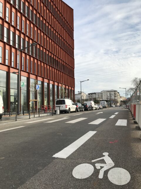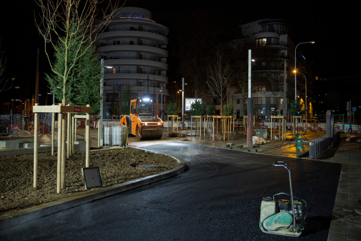 Au total, 14000 m² de voiries et d’espaces publics ont été réaménagés le long du bâtiment Orange, pour créer la nouvelle rue Flandin et réaménager une partie de la rue Kimmerling.