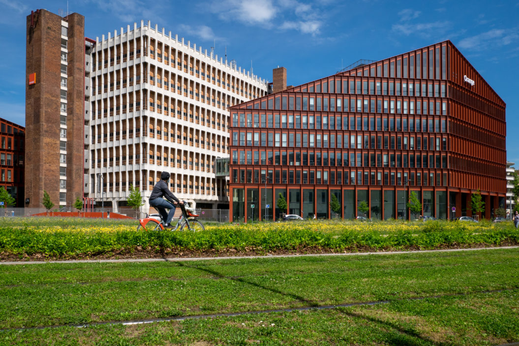 Le profil de la rue des Cuirassiers sera revu de façon à intégrer une circulation cycles sécurisée dans les 2 sens, avec une capacité importante de stationnement vélos et l’intégration d’une strate basse de végétaux.