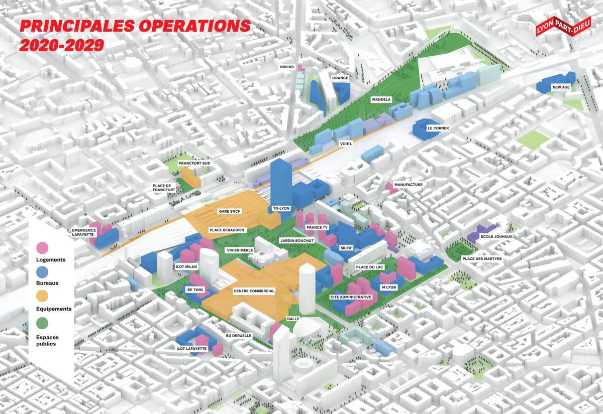 L’objectif est de rendre la Part-Dieu plus résiliente et inclusive, en redonnant une place centrale à la nature, aux mobilités actives et décarbonées. Pensé pour et avec ses habitantes et habitants, ce nouveau territoire de vie plus apaisé, agréable et végétalisé, privilégiera un développement économique plus responsable. Pour y parvenir la Métropole et la Ville de Lyon, accompagnées par la SPL Lyon Part-Dieu, fixent de nouvelles orientations à ce projet urbain emblématique après 1 an de travail (à travers l’actualisation notamment de la programmation de la ZAC Part-Dieu Ouest) :