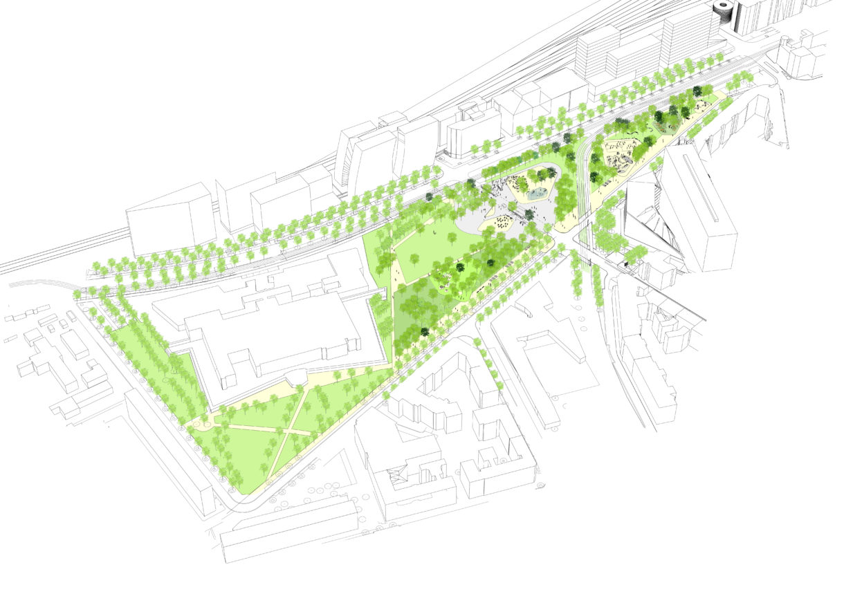 - Proposer un grand espace ouvert au habitants et salariés du quartier marqué par une forte présence d’arbres, en cohérence avec l’esplanade existante déjà aménagée et avec les espaces publics réaménagés de la Part-Dieu