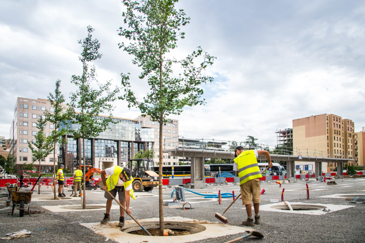 L’aménagement de la place de Francfort, à l’Est de la gare Lyon Part-Dieu, se poursuit au mois de juin avec la réalisation des plantations sur le futur espace piéton. Près d’une centaine d’arbres seront plantés sur ce nouvel espace au cœur du quartier.