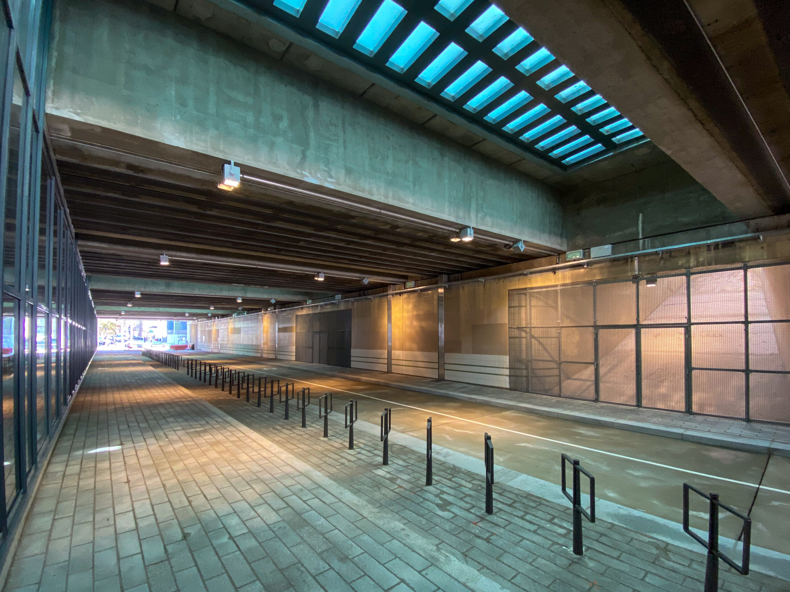 Plus lumineux, le nouveau passage apporte plus de confort et de sécurité aux usagers, aussi bien en journée, grâce à des puits de lumière créés dans les quais ferroviaires, que la nuit, avec un éclairage fixe et dynamique, qui s’anime sur la paroi sud, au passage des vélos et des piétons.