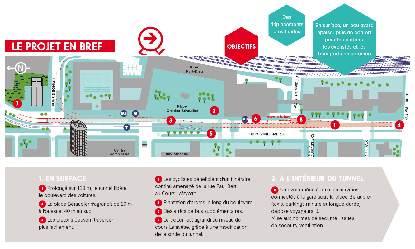 Dans le cadre du projet du Lyon Part-Dieu, la SPL Lyon Part-Dieu débute les travaux d’infrastructures du tunnel Vivier-Merle. Cette opération a pour objectif d’améliorer à terme le plan de circulation aux abords du futur pôle d’échanges multimodal. Les travaux ont pour principale conséquence la fermeture du tunnel Vivier-Merle à la circulation automobile à partir du 28 mai 2018.