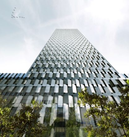 Le projet architectural de la nouvelle tour, en accord avec le principe de « réinvention » du style Part-Dieu préconisé par l’AUC, s’imprègne de l’histoire du quartier et s’intègre au patrimoine existant. L’architecte a imaginé une façade contemporaine, générant un relief pour créer une grande profondeur à l’image des bâtiments existants. La trame vitrée et régulière de la façade se plisse pour créer cette profondeur. La lumière et les reflets se multiplient et se fragmentent donnant un caractère kaléidoscopique au projet. Le bâtiment est certifié NF HQE et BREEAM niveau excellent. Une labellisation Well est à l’étude.