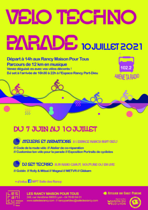 Nouvel acteur socio-culturel du quartier, l’espace Rancy Part-Dieu s’associe à la Maison du Vélo, au Chat Perché, à Medic’Action et à Radio Canut pour proposer du 7 juin au 10 juillet une programmation d’animations festives et pédagogique autour de la pratique du vélo et de la culture électronique. Une série d’ateliers et d’animation pour tous les âges aura lieu à l’espace Part-Dieu, 1 rue Desaix au cœur du territoire en projet : réparation, code de la route, customisation de vélos, exposition…