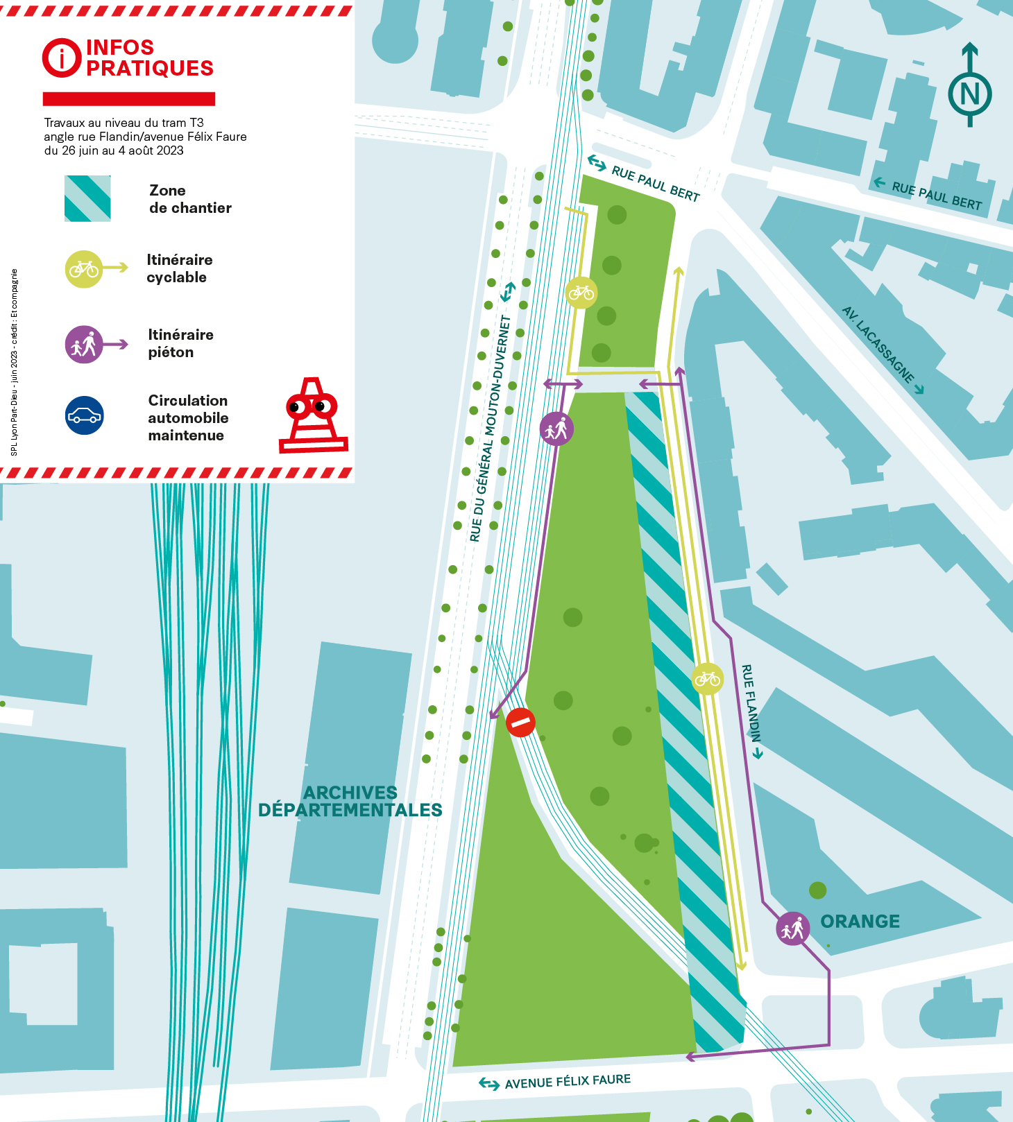 • Durant les travaux, les cheminements piétons aux abords du chantier rue Jeanne Hachette seront déviés et la traversée du parc interdite.