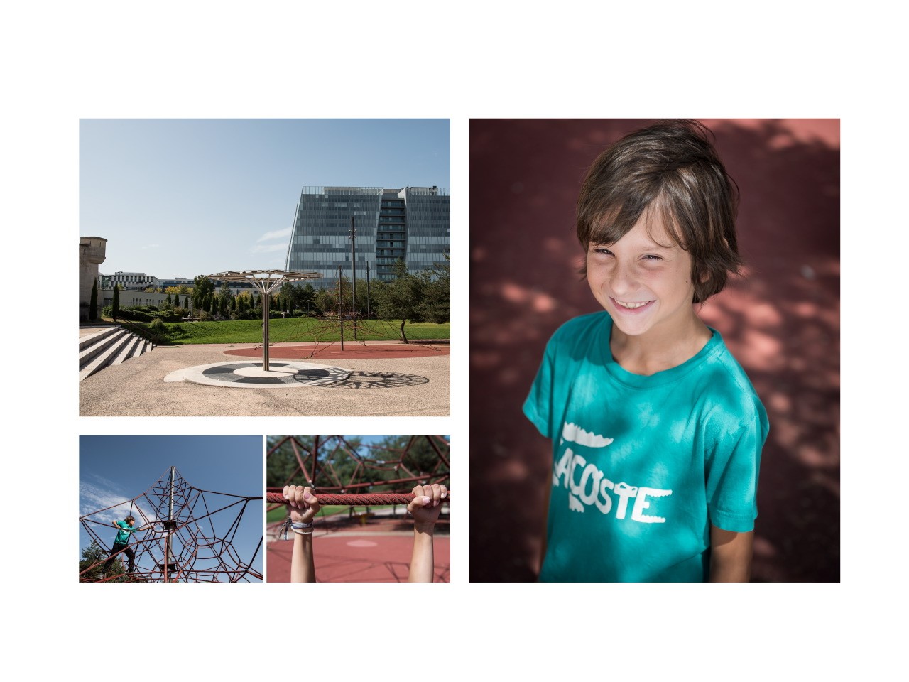 Ce qu’il préfère, c’est jouer au foot. Il joue en équipe depuis peu, mais surtout, il joue sur le terrain du square du Sacré-Cœur – et oui, il y descend tout seul — avec ceux qui aiment comme lui donner des coups de pied au ballon. Des garçons et des filles ? Plutôt des garçons, apparemment. Il a suivi la Coupe du Monde cet été ? Ça va de soi. Et il y a des joueurs qu’il préfère ? Modric, un joueur croate et Mbappé. Pourquoi Modric ? Parce qu’il trouve qu’il lui ressemble un peu. Et pourquoi Mbappé ? Haussement d’épaules presque consterné : la réponse devrait sauter aux yeux comme il saute d’une corde à l’autre sur « l’araignée » qui se dresse sur un angle du parc Nelson Mandela. Qui ressemble un peu à un stade avec ses bords en talus et sa grande pelouse.
