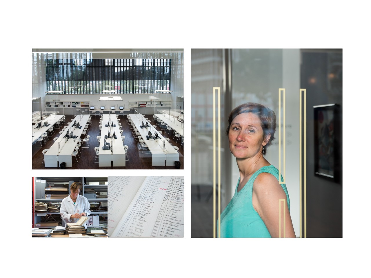 La mission des archives départementales, explique-t-elle, c’est de collecter toutes les archives publiques pour les donner à communiquer aux citoyens. « Pour des raisons juridiques et historiques et pour la recherche. C’est très vaste : cadastres, tribunaux, chambres de commerce, agriculture… » Elle s’occupe concrètement du domaine de la culture et de l’enseignement. Et, une demi-journée par semaine, elle a le plaisir d’être en contact direct avec le public en salle de lecture — 530m², 150 places, ambiance à la fois high-tech et studieuse. « Un de nos attraits particuliers, c’est qu’on peut consulter directement les originaux. Parfois, lorsqu’on met dans les mains d’un lecteur un document qu’il recherchait depuis longtemps, il peut y avoir de l’émotion… Pour lui, mais pour nous aussi. C’est vraiment chouette. »