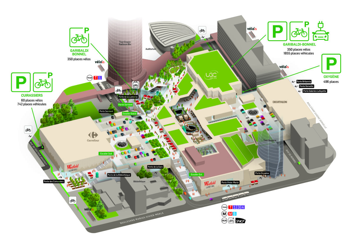 Avec 240 commerces et restaurants et 35 millions de visiteurs par an, le centre commercial de la Part-Dieu est depuis 40 ans l’un des plus dynamiques en Europe. L’équipement constituait en 2012 une « boite fermée » pour le quartier : l’enjeu majeur du projet était de l’ouvrir et de le connecter à la ville, en travaillant sur son accessibilité, la lumière, l’ouverture sur le « dehors ». Conçu par l’agence néerlandaise d’architecture MVRDV, l’agence lyonnaise Sud-Architectes et le paysagiste Base, le projet prévoit également 80 enseignes supplémentaires et un cinéma multiplex de 18 salles.
