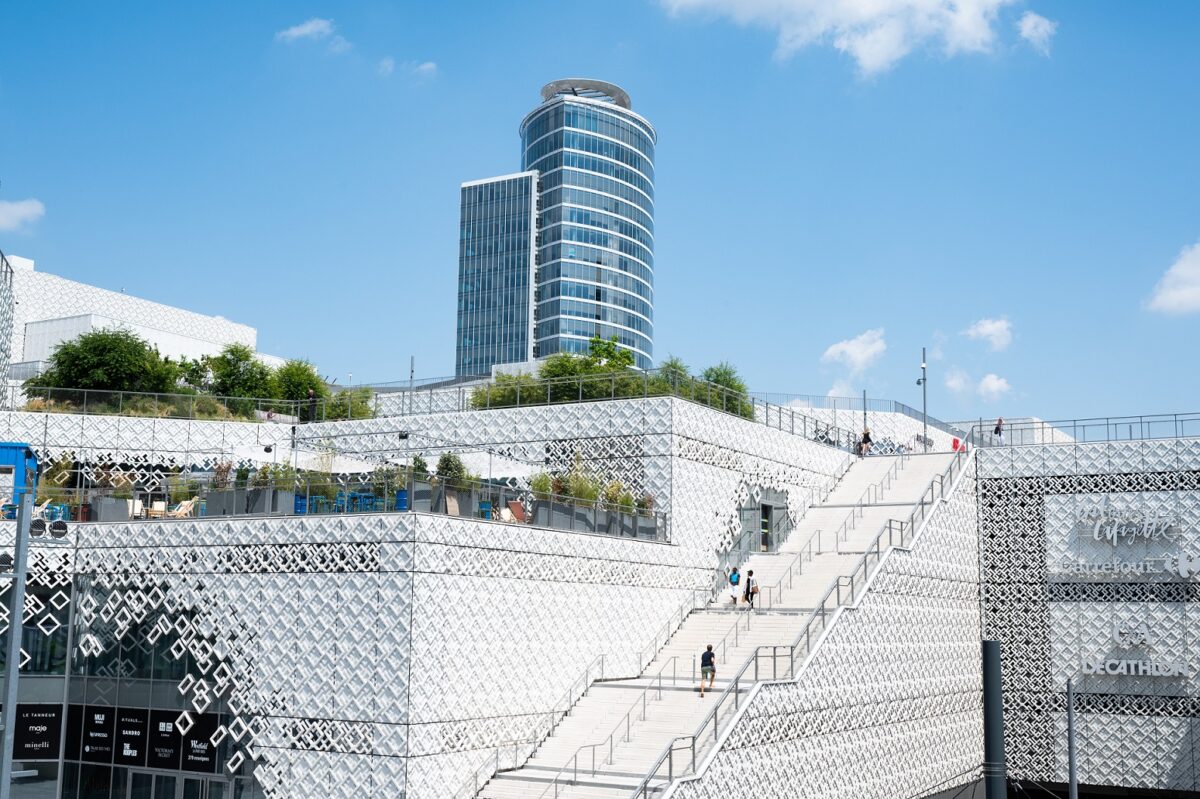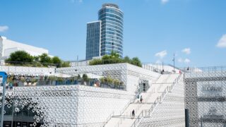 IMG 8135 (1) Le parti-pris architectural porté par l’architecte Winy Maas transforme sans bouleverser la relation du centre à ses bâtiments environnants. La volumétrie a peu évolué, excepté dans sa partie d’extension sur la rue Bouchut. L’espace situé entre le centre et la bibliothèque municipale Part-Dieu est amélioré par un réaménagement des terrasses séparant les deux édifices. Le but ? Offrir une fonction à cet espace et l’animer avec des terrasses de cafés et de restaurants. La création du passage piéton traversant le long de la rue Servient permettra de rejoindre directement la gare depuis la rue Garibaldi à partir d’octobre 2021.