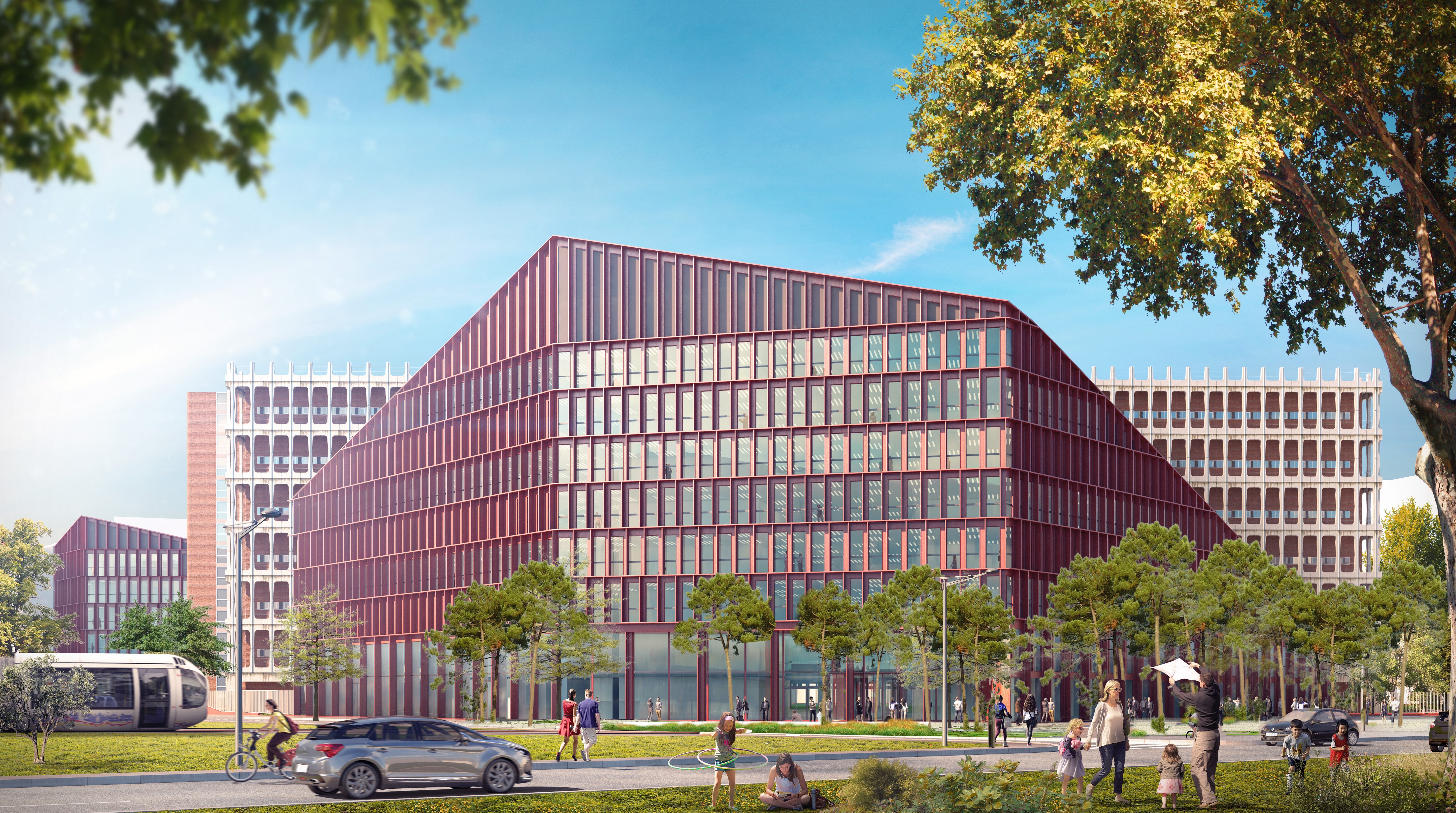 Au total, 14000 m² de voiries et d’espaces publics ont été réaménagés le long du bâtiment Orange, pour créer la nouvelle rue Flandin et réaménager une partie de la rue Kimmerling.