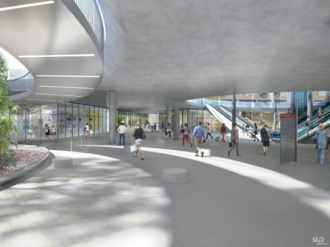Au niveau inférieur, une place basse dédiée à l’intermodalité