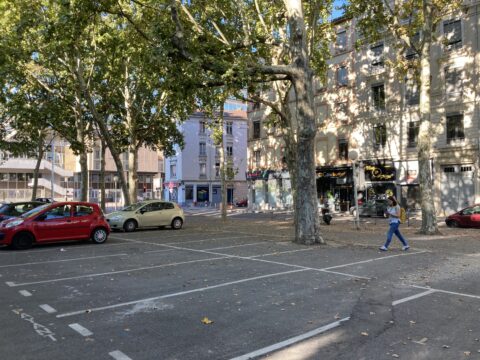 En attendant les travaux définitifs, la SPL Lyon Part-Dieu a proposé un dispositif d’urbanisme temporaire afin d’animer l’espace, de tester de nouveaux usages. Cet aménagement transitoire a permis de donner vie aux idées recueillies lors de la concertation en mars 2022, parmi lesquelles on retrouvait : le manque d’assises, un besoin d’espaces ludiques pour les enfants et un souhait de végétalisation. Ainsi, un premier décroutage pour préfigurer les futures plantations a été réalisé, accompagné de l’installation de mobilier temporaire, dont une table de banquet, aujourd’hui réemployée sur la place Gérard Collomb, devant la métropole.