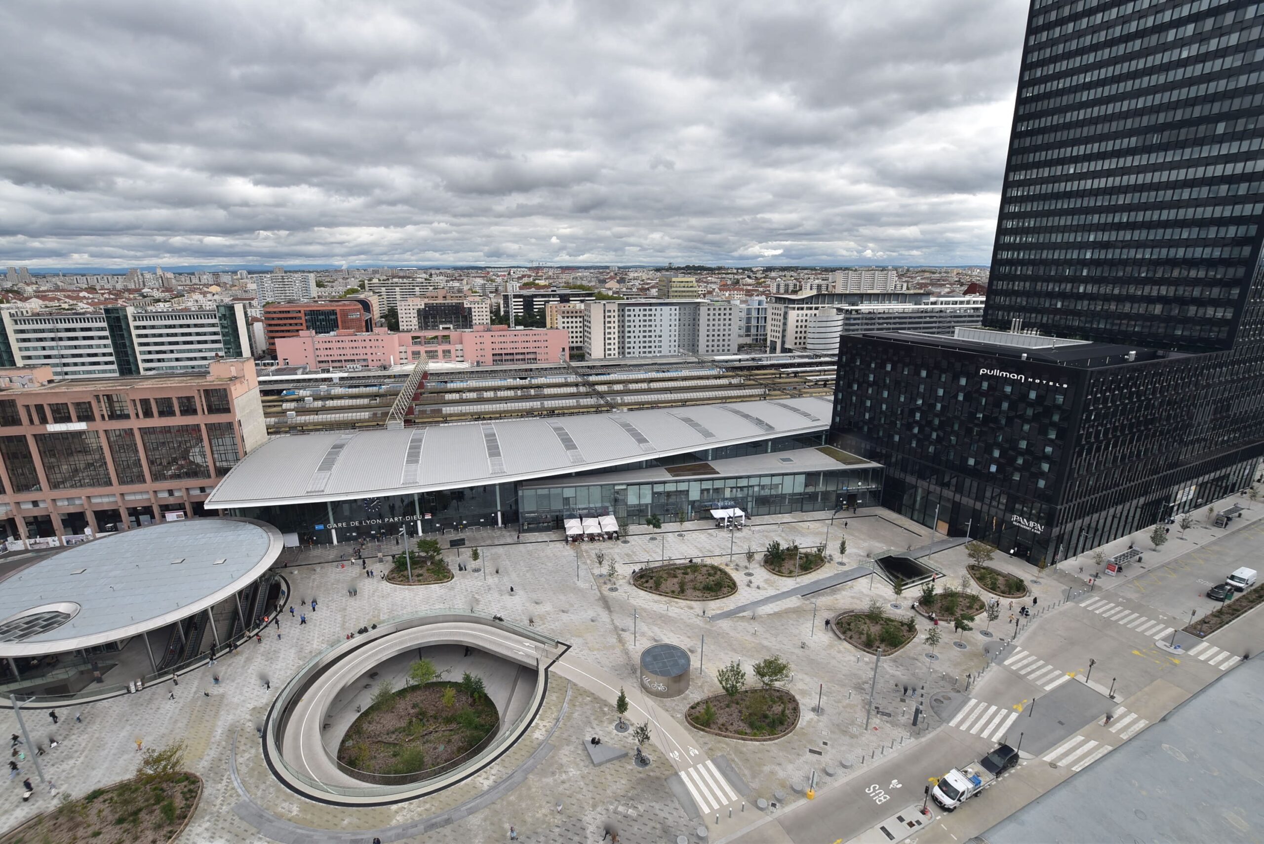 - La Métropole de Lyon pour les espaces publics (place de Francfort, place Béraudier) des voiries (passage Pompidou, boulevard Vivier Merle) et des infrastructures d’accès (accès souterrains au parking Béraudier).